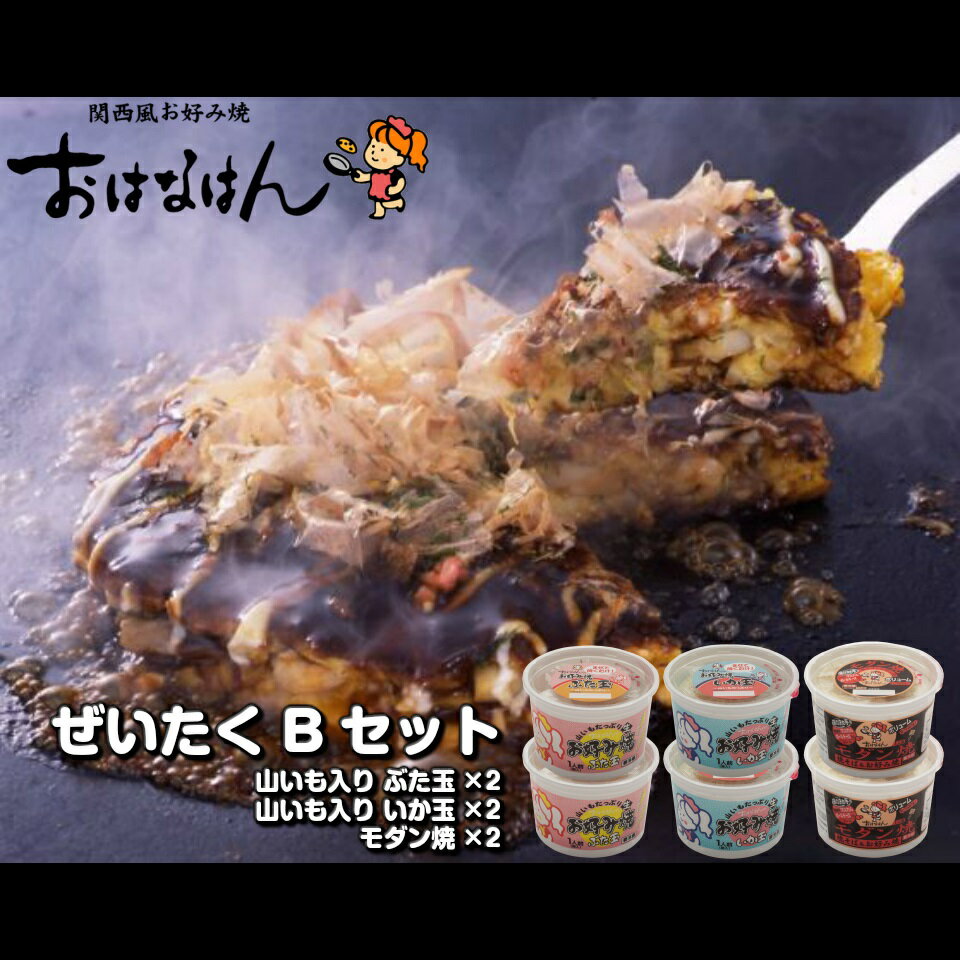 関西風お好み焼 おはなはん【ぜいたくBセット】山いもたっぷり ぶた玉 2個山いもたっぷり いか玉 2個モダン焼 2個合計6個セット